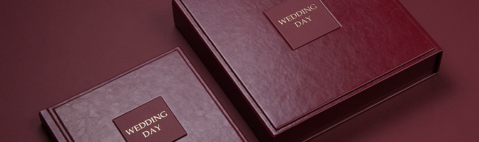 Подбирая переплётные материалы для оформления комплекта фотокниги и фотобокса, стоит учитывать, например, что на поверхносте искусственной кожи персонализация фотокниги, нанесённая методом горячего тиснения металлизированной фольгой, создает дополнительные блики. Особенно это заметно на глянцевых переплётных материалах тёмных тонов. В таких случаях можно посоветовать пигментную фольгу, которая не бликует, или предусмотреть вставку из дизайнерской бумаги. Кстати сказать, для горячего тиснения на бумаге ассортимент цветов фольг гораздо шире за счёт металлизированных цветов. В то время как, для тиснения по поверхносте искусственной кожи выпускают только фольги золотого или серебряного цветов.