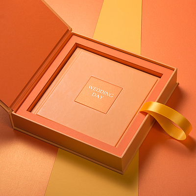Подбирая переплётные материалы для оформления фотокниги, можно использовать иной, противоположный вариант, когда большая площадь комплекта фотокниги и фотобокса оформлена в темном цвете, а мелкие детали и элементы - в осветленных вариантах гармоничных цветов.